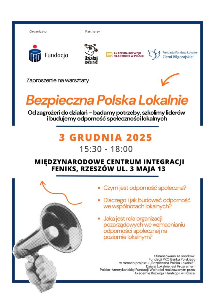 Zapraszamy na bezpłatne warsztaty i spotkanie informacyjne o dodatkowych możliwościach wsparcia dla NGO Podkarpacia.